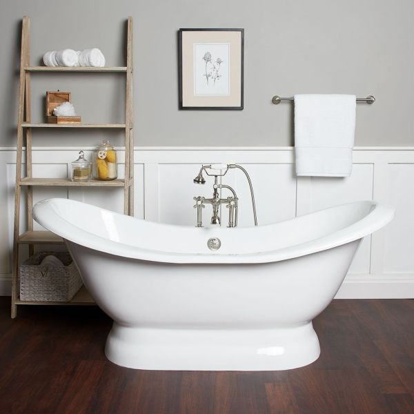 DEVINSHIRE 72 INCH CAST IRON PEDESTAL DOUBLE SLIPPER TUB