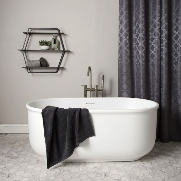 Stylish and durable, the Janine Freestanding Tub maximizes comfort with a sleek high-gloss acrylic design, inviting long soaks in its wide basin.