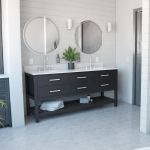 The highly attractive Holden Bathroom Vanity is the perfect fit for your bathroom remodel. In addition to its beauty, it features soft-close drawers and a slatted bottom shelf, so there is plenty of room for toiletries. Crafted from solid birch and oak wood, this vanity will stand the test of time as a long-term solution to your personal storage needs.