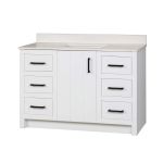 Beautifully crafted, the Wexler Oak Bathroom Vanity exudes fine craftsmanship and thoughtful design. The charming pull hardware on the doors and drawers add a touch of sophistication, while the quiet soft-close drawers provide effortless functionality. The rich wood construction creates a luxurious ambiance that elevates the look and feel of your space. Create your bathroom oasis with the Wexler Oak Vanity.