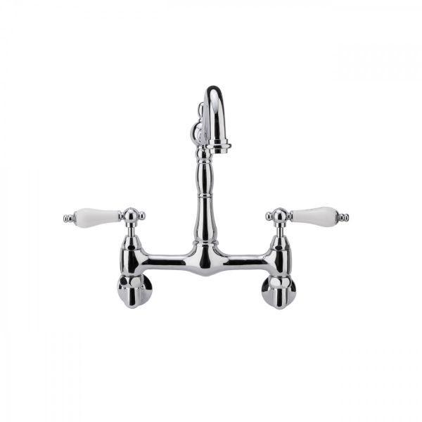 Florian Wall Mount Kitchen Faucet - Porcelain Lever Handles